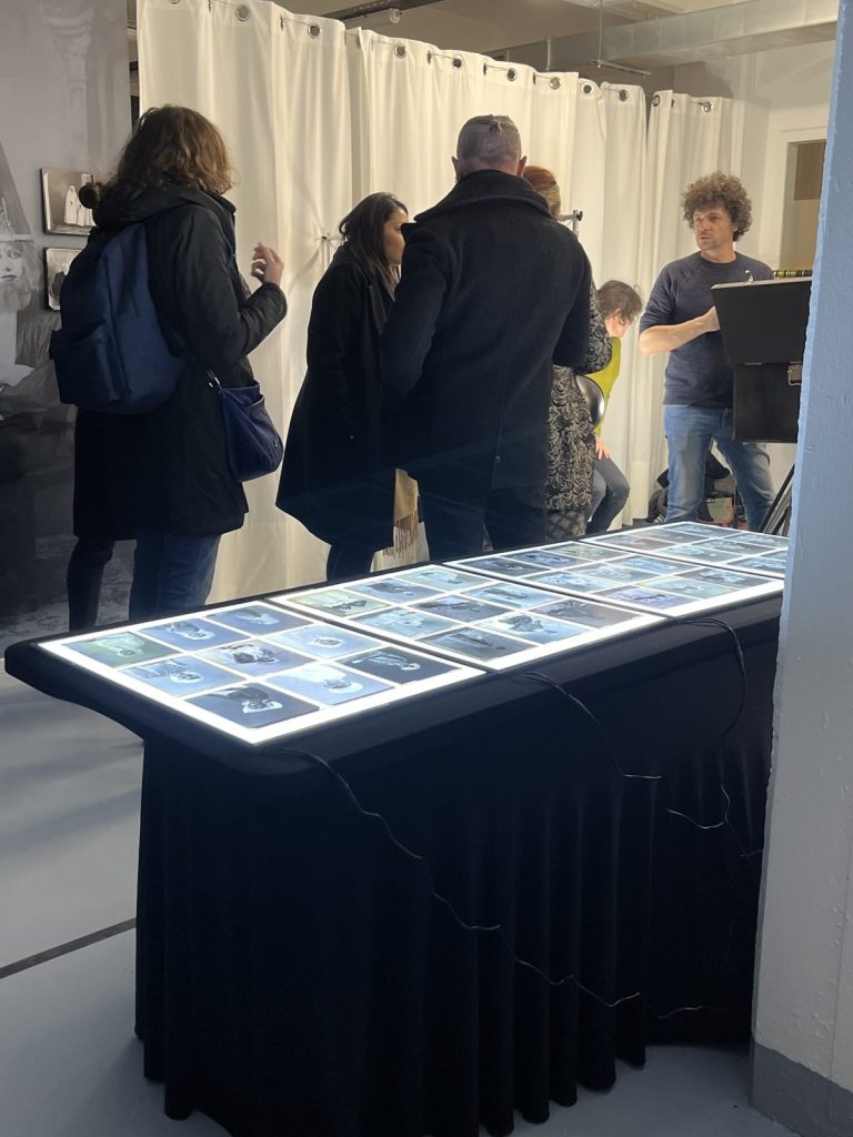 A l’occasion de cette soirée festive et intime, nous avons proposé à l’ensemble des participants de poser face à la boite noire de Michel Grasso photographe. L’Afghan Box est à la fois un appareil photo (chambre photographique) et un laboratoire de développement. Elle est notamment utilisée en Afghanistan et dans plusieurs pays d’Afrique par des portraitistes de rue. Résultat immédiat…